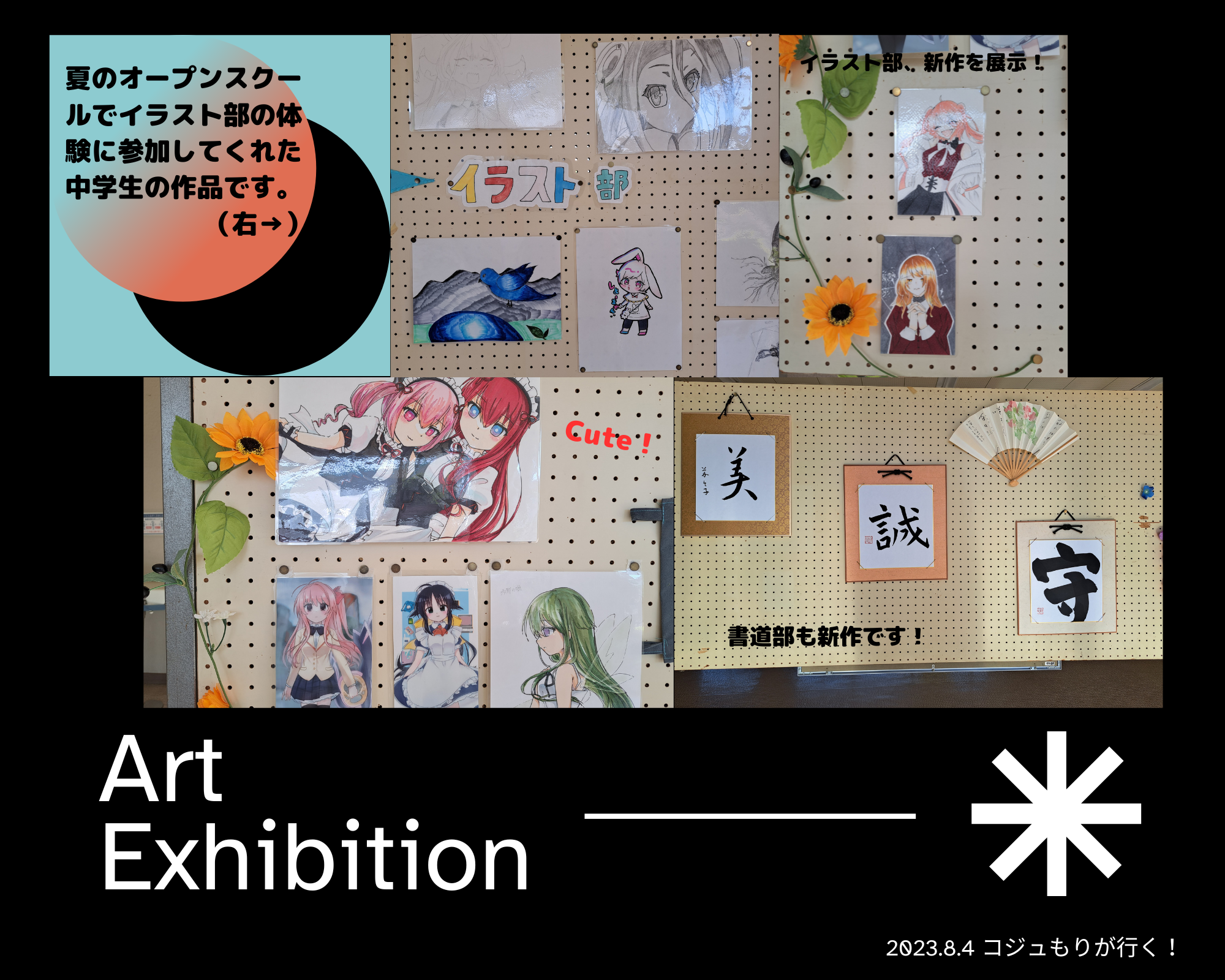2023/08/04 文化部展示(体験の中学生の作品もあり〼)