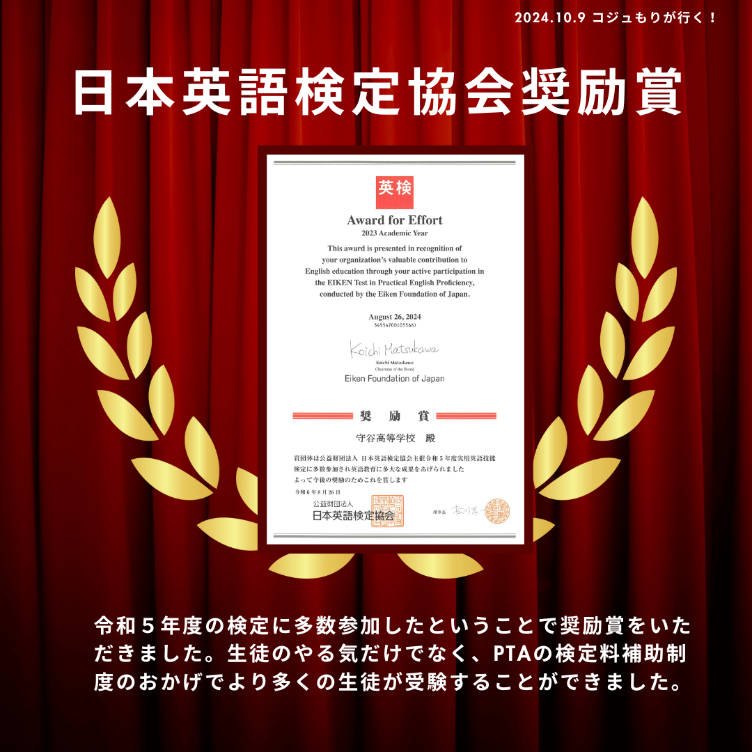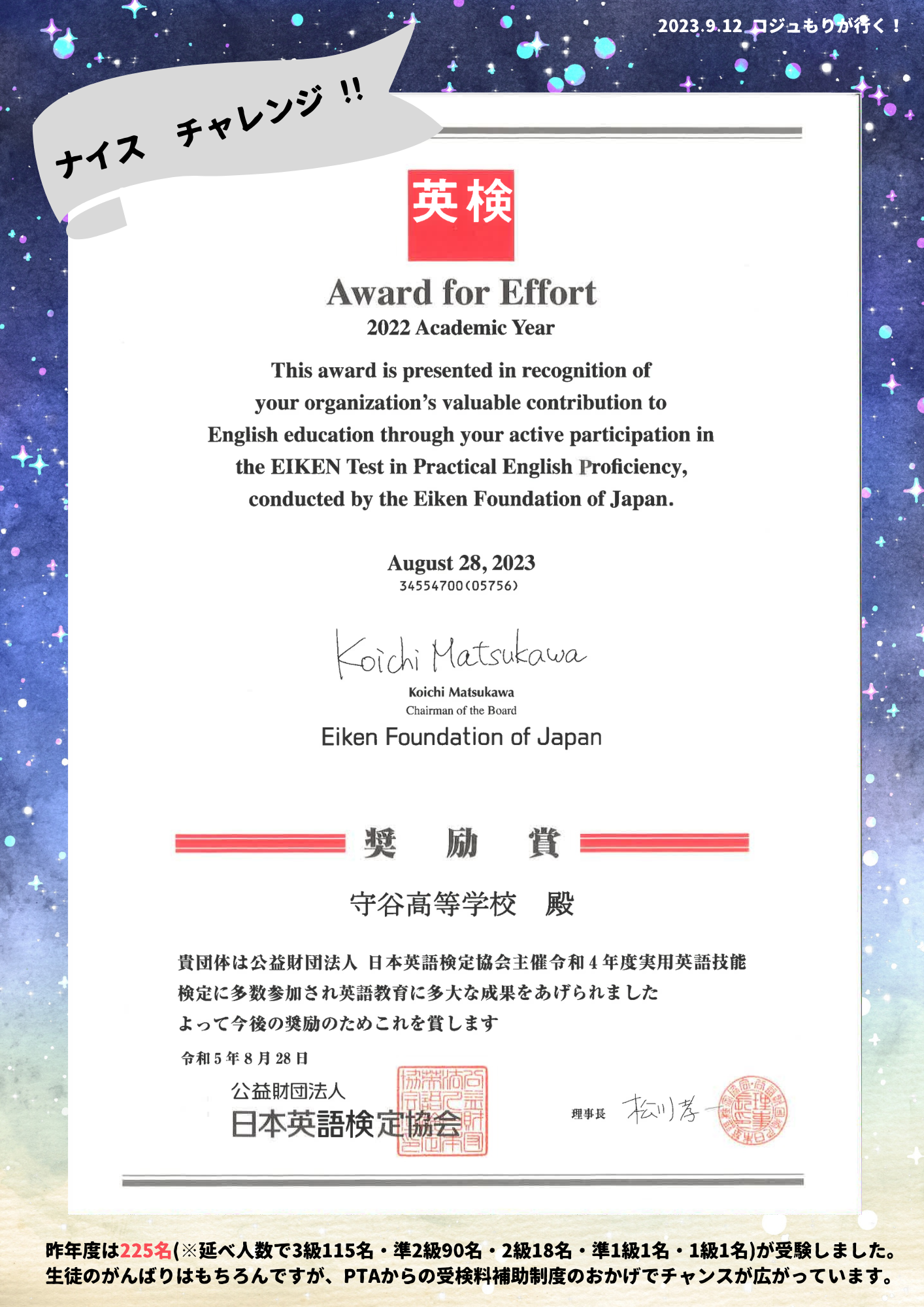 2023/09/12 英検奨励賞 補助制度Thanks a lot!