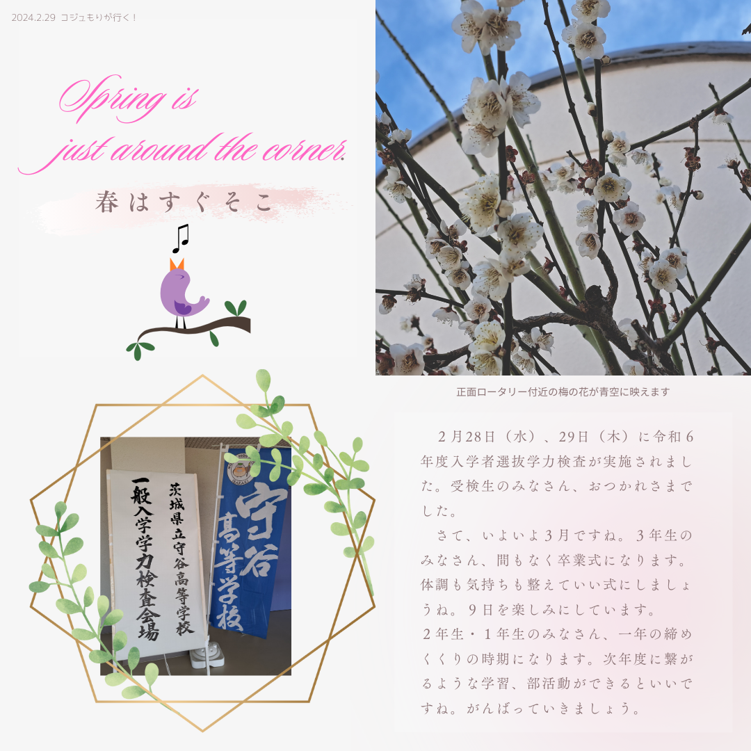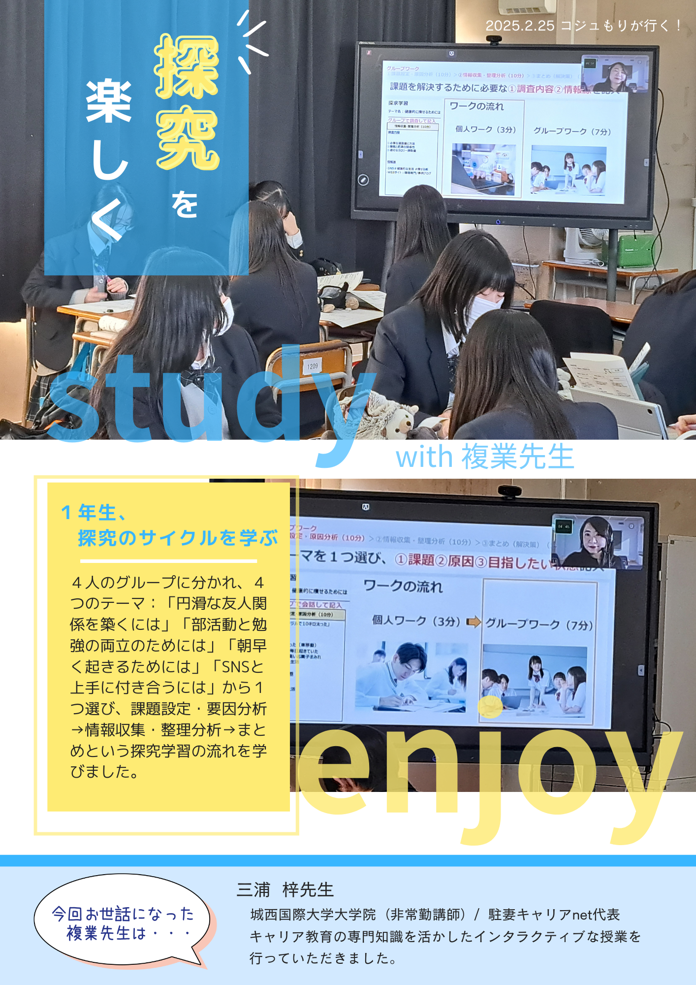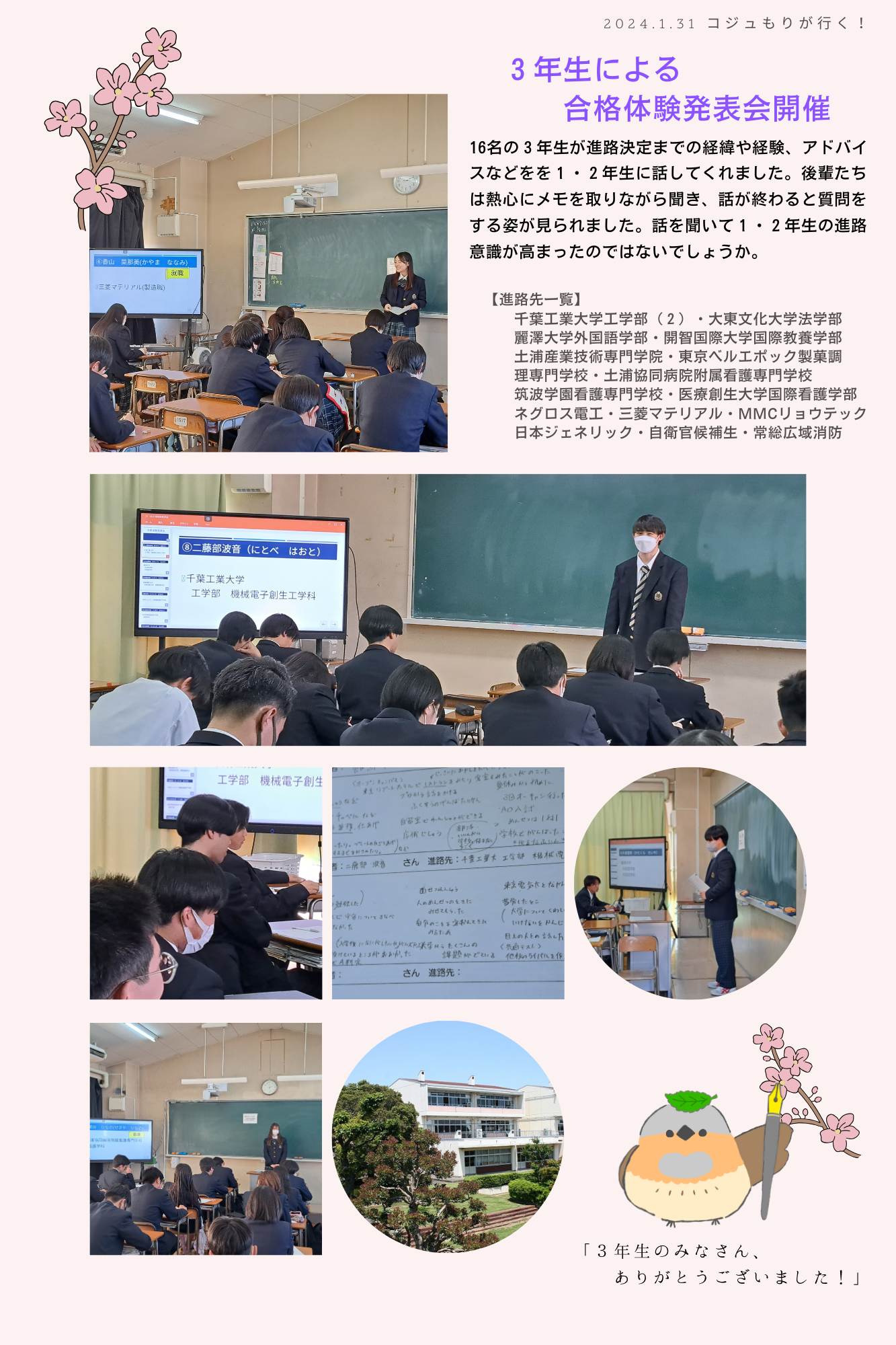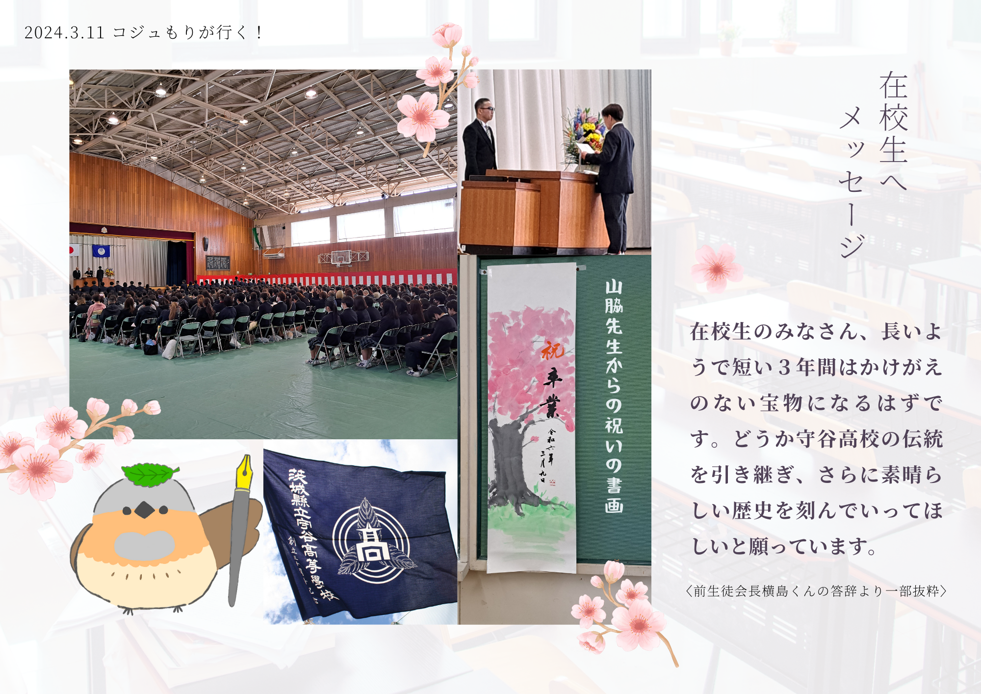 守谷高校公式キャラクタ-【コジュもり】が、守谷高校生のいるところをアチコチ飛び回り紹介していくコーナーです。
