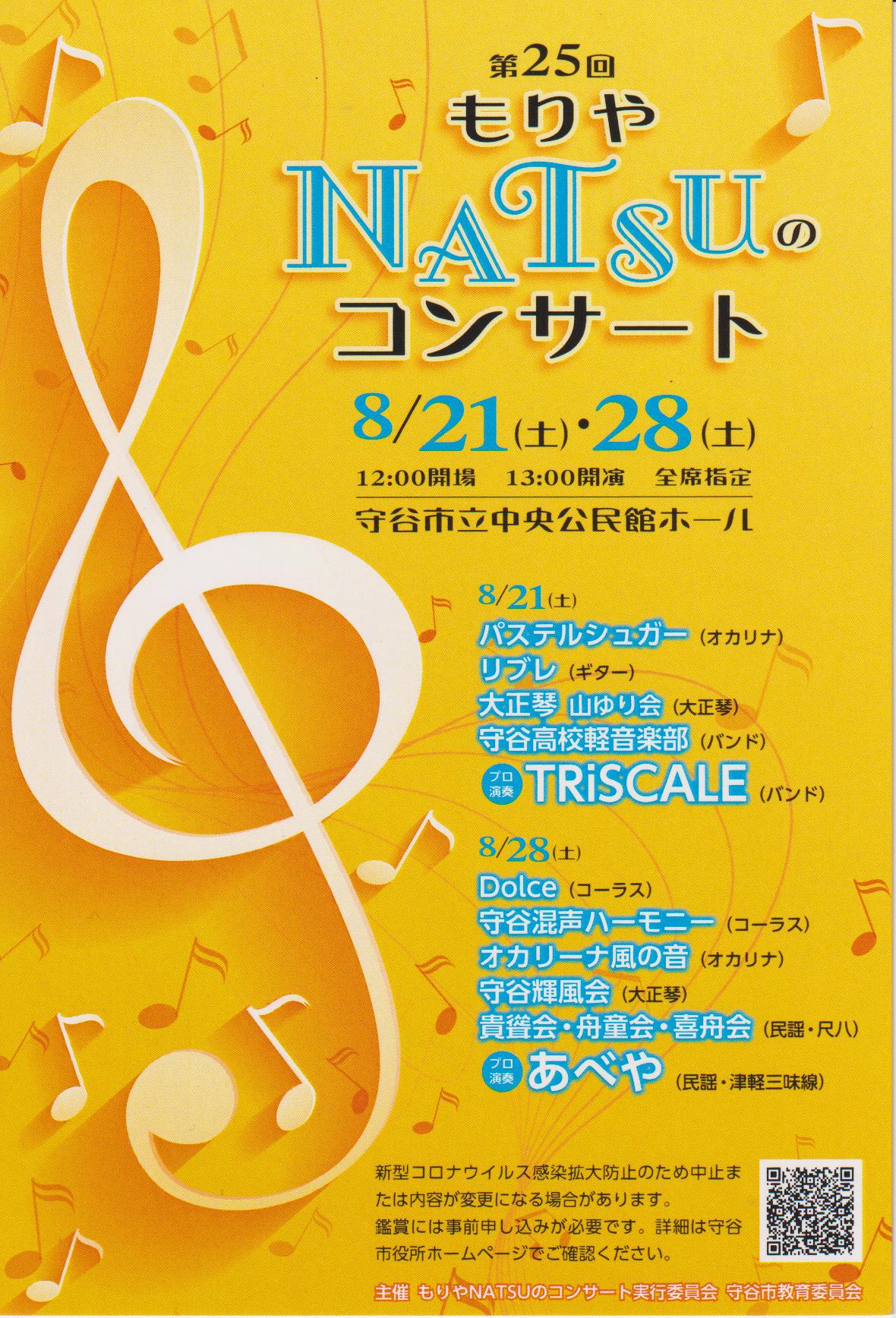 7/20 軽音楽部が第25回もりやNATSUのコンサートに出場します ←イベントが中止となりました